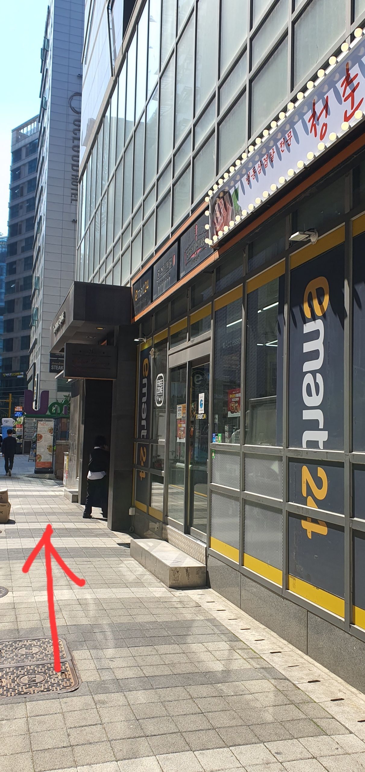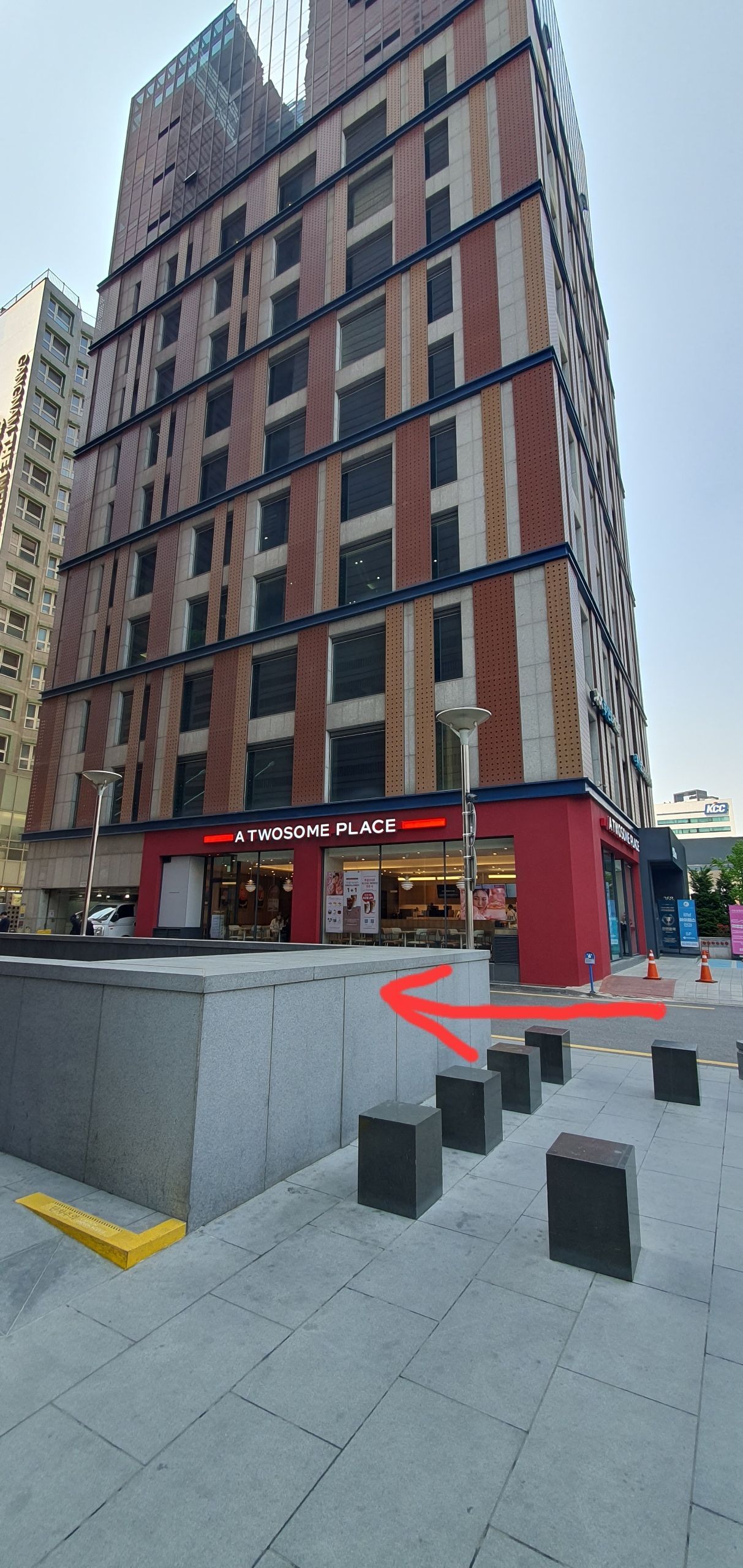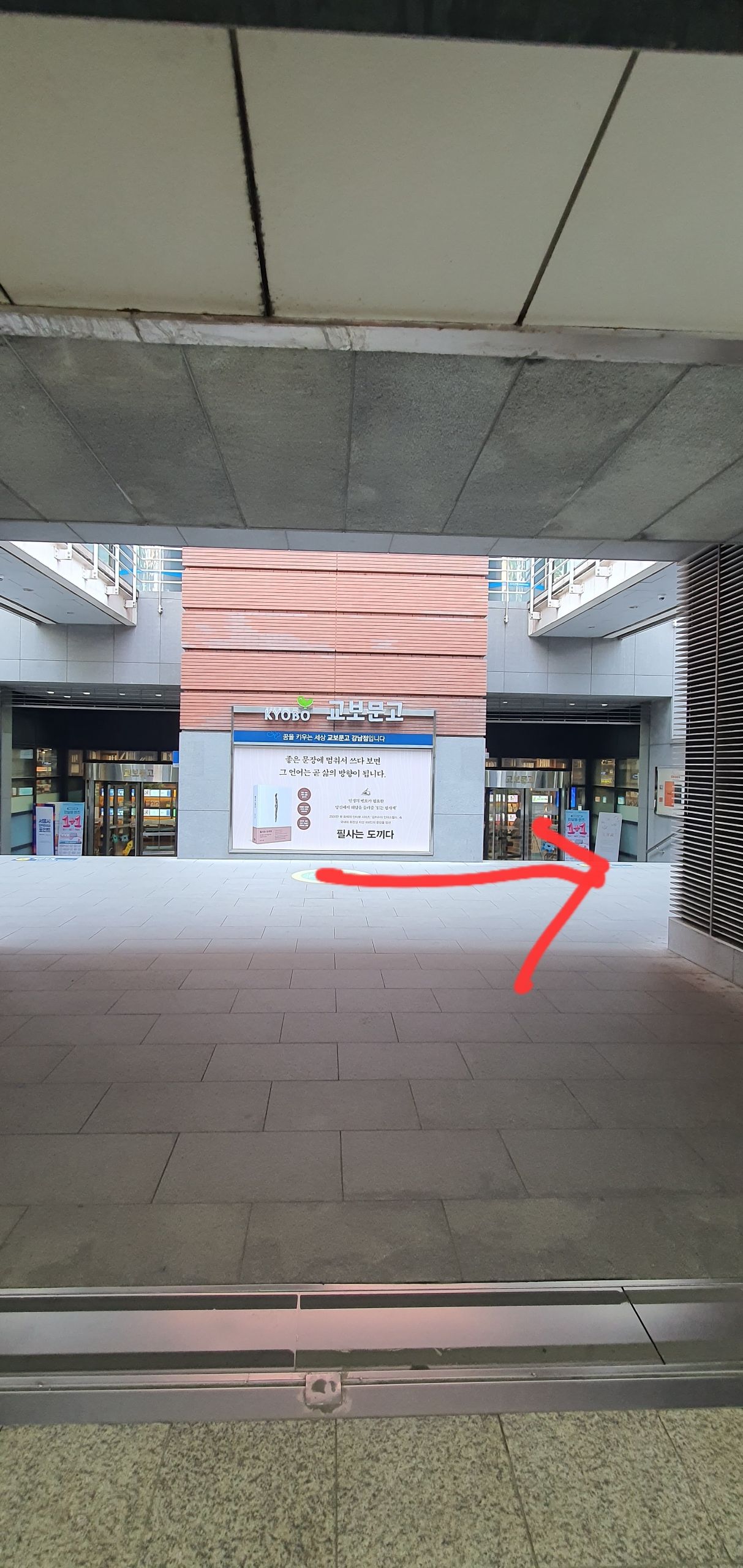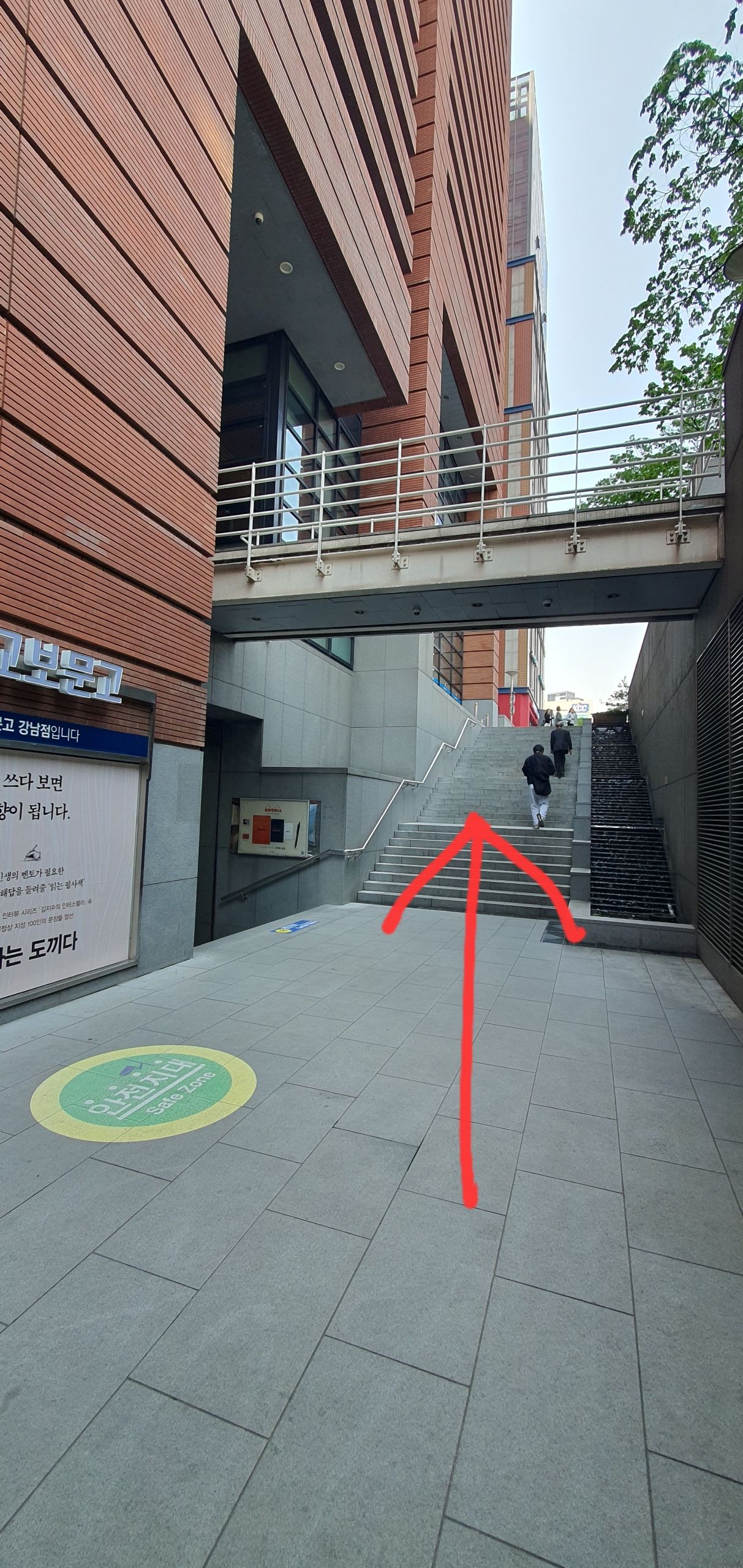 Use the stairs on the right side of the Kyobo Tower to reach