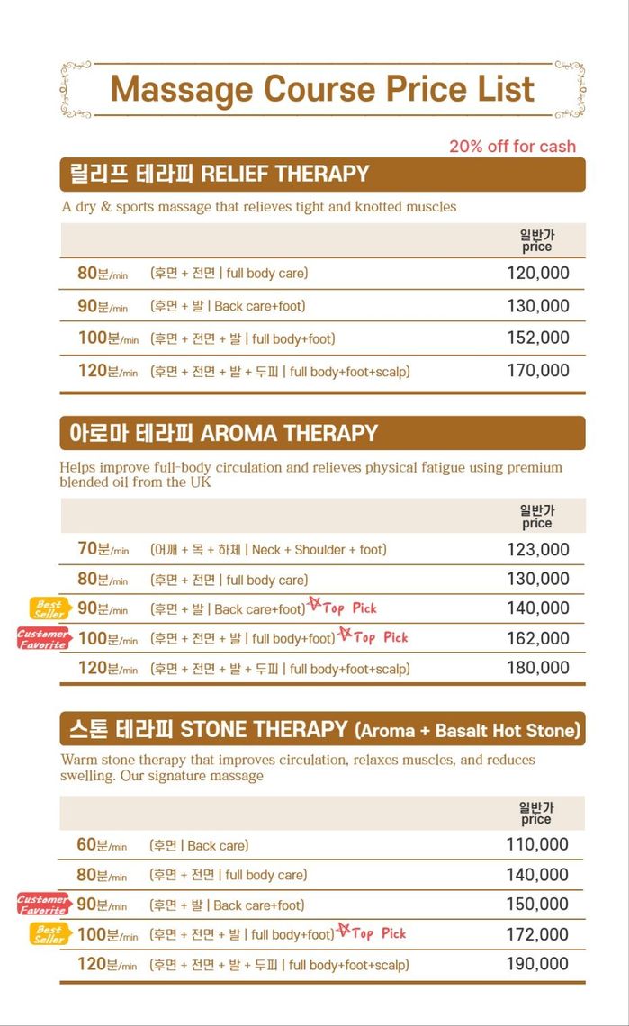 We offer traditional Korean massage techniques, expertly blending relaxation with therapeutic benefits to give you an unforgettable experience. Whether it’s a soothing foot massage or a deep tissue body massage, our therapies are designed to address your specific needs. - Affordable Luxury